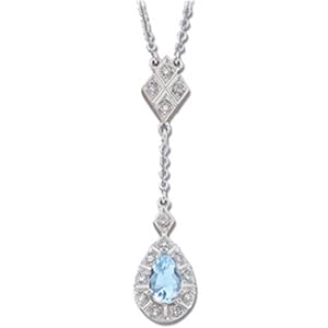 0.16Ct.T.W. Sparkling Round Cut Diamonds, pear Shaped Aquamarine, 14k White Gold.