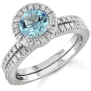 18k White Gold Aquamarine and Diamond Wedding Ring Set